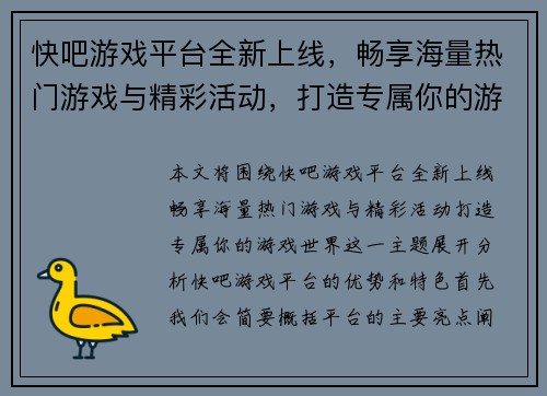 本文将详细介绍如何在台服战网注册账号并顺利登录体验游戏的完整流程,旨在为玩家提供清晰、易懂的步骤和解决方案。文章从四个关键方面进行阐述:第一,如何注册一个台服战网账号;第二,如何处理台服战网账号的登录问题;第三,如何选择并下载台服战网的客户端;第四,如何解决在登录过程中可能遇到的常见问题。每个步骤都...